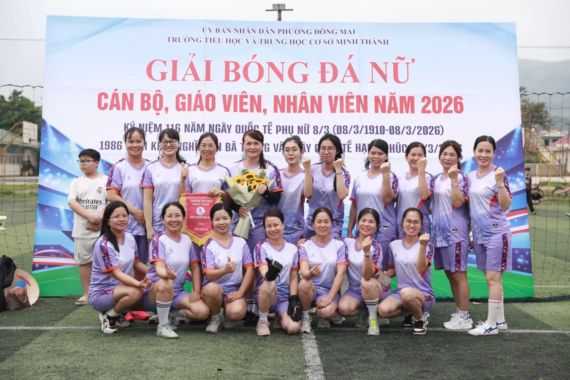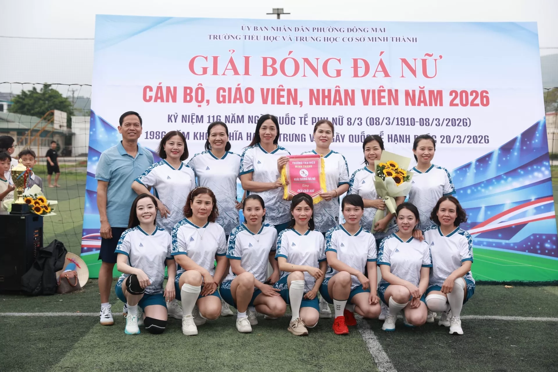 Nhân dịp kỷ niệm 116 năm Ngày Quốc tế Phụ nữ 8/3 (08/3/1910 – 08/3/2026), 1986 năm Khởi nghĩa Hai Bà Trưng và hưởng ứng Ngày Quốc tế Hạnh phúc 20/3, chiều ngày 06/3/2026, Trường TH&THCS Minh Thành đã tổ chức Giải bóng đá nữ cán bộ, giáo viên, nhân viên năm 2026 trong không khí vui tươi, sôi nổi và đầy ý nghĩa.